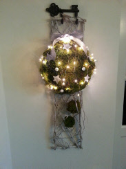 Tijd om iets moois te verzinnen voor de kerst ! Voor aan de muur en mooie kerstbal, en een lang tafelstuk voor op de tafel !