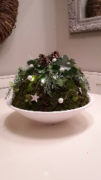 Bloemstuk in witte schaal