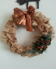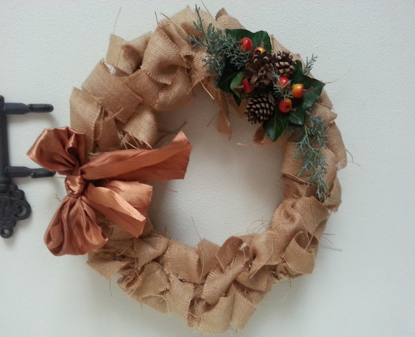 Deze krans ga je zelf bekleden met jute, en is in de basis 40 cm (iets groter als een standaard krans deze is meestal 35 cm)
